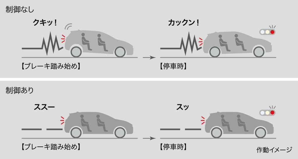 - 初搭載の「スムーズストップ機能」: 停車直後の車両の揺れ動きを抑制し、乗員の姿勢変化を低減する制御技術です。これまで高級車にのみ搭載されていた機能がコンパクトカーであるアクアに初めて採用され、格段に上質な停車感を実現しました。
